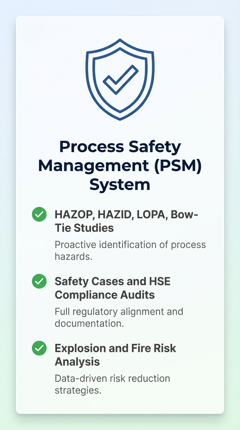 We are a multidisciplinary engineering firm delivering integrated solutions across risk management, fire protection, process safety, and environmental compliance.